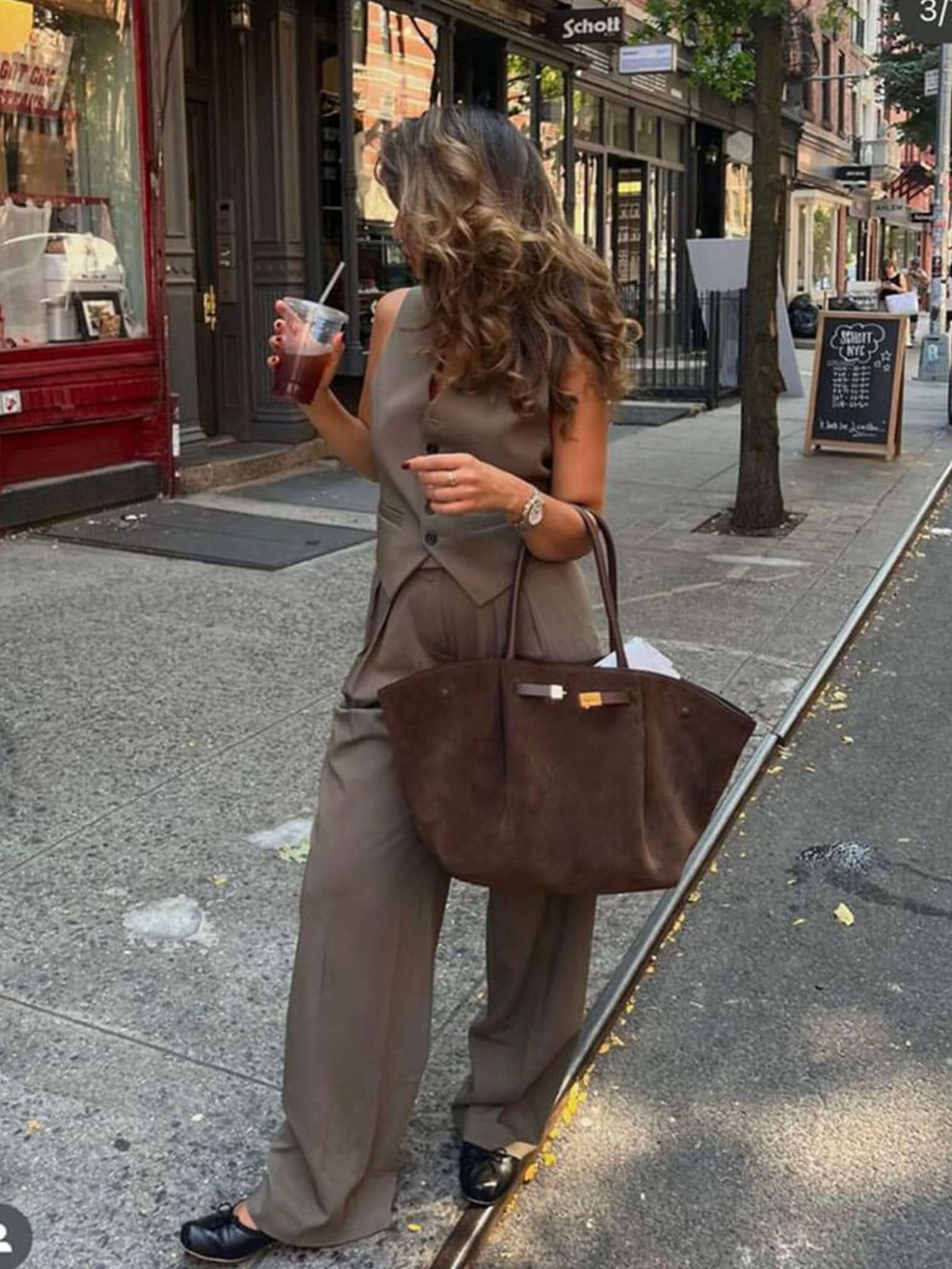 Diese Handtasche zeichnet sich durch ihre strukturierte Form mit klaren Linien aus. Sie verfügt über zwei Tragegriffe sowie einen abnehmbaren Schulterriemen, der unterschiedliche Tragevarianten ermöglicht. Ein dezentes Metallelement am oberen Rand setzt einen eleganten Akzent. Das Design wirkt modern und gleichzeitig zeitlos.