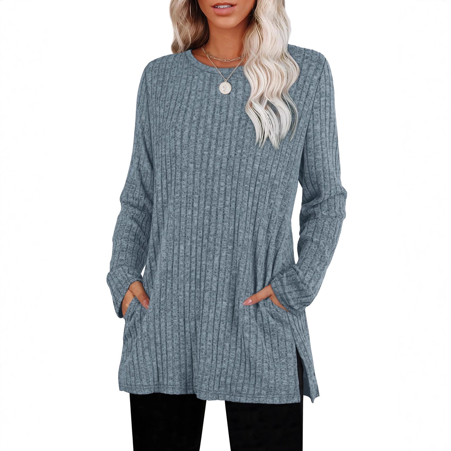 Lockerer Pullover aus geripptem Strickstoff mit Taschen