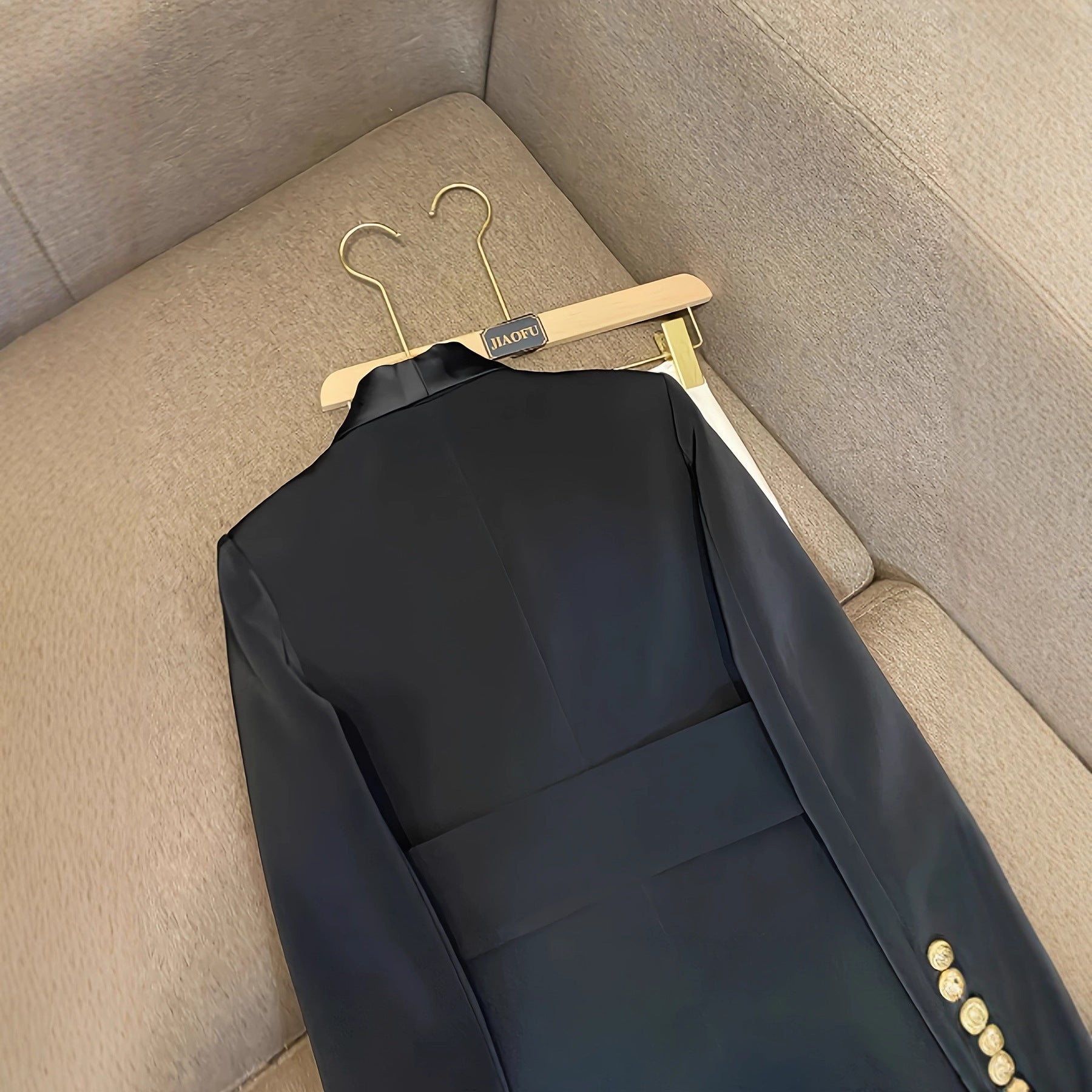 Der taillierte Mantel verfügt über ein doppelreihiges Knopfdesign auf der Vorderseite und ist mit einem passenden Stoffgürtel für eine betonte Taille ausgestattet. Die Ärmel sind konventionell geschnitten und an den Manschetten mit mehreren metallisch glänzenden Knöpfen versehen. Zwei paspelierte Seitentaschen ermöglichen das Verstauen kleiner Gegenstände. Das glatte Revers hebt sich leicht ab und sorgt gemeinsam mit der schlanken Passform für einen klassischen Gesamteindruck. Das Material besteht aus dauerhaftem Polyesterfaser und bietet eine pflegeleichte Oberfläche.